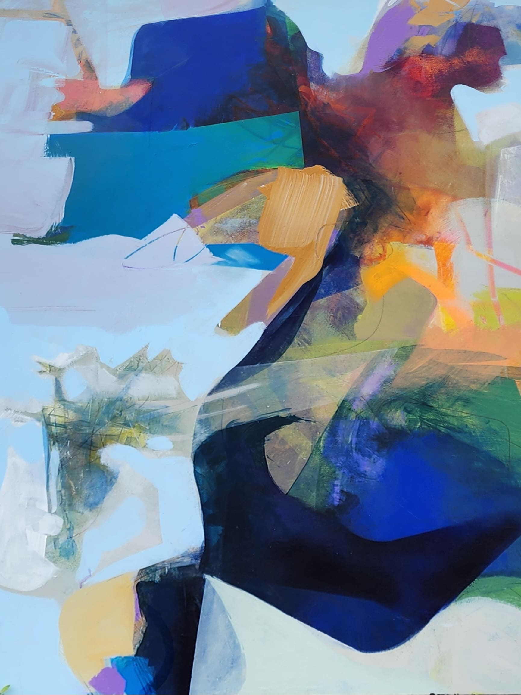 With its electric blues and warm amber strokes, Ron Gordon’s canvas hums like Houston itself. (Photo courtesy Ron Gordon)